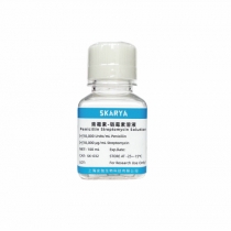 青霉素和链霉素对革兰阳性细菌和革兰阴性细菌具有有效的联合抗菌作用,可用于防止细胞培养受到细菌污染。青霉素起初是从青霉菌中提纯制成,其作用机制为直接干扰细菌细胞壁的合成以及间接通过触发酶释放来进一步改变细胞壁。链霉素起初是从灰色链霉菌中提纯制成,其作用机制为与细菌核糖体的30S亚单位结合,进而抑制蛋白合成,导致敏感细菌死亡。本产品用0.9%氯化钠溶液配制,青霉素G钠盐的含量为10 kU/mL,硫酸链霉素的含量为10 mg/mL。在细胞培养液中推荐的青霉素的工作浓度为100 U/mL,链霉素的工作浓度为0.1 mg/mL,即按照100倍稀释使用即可。